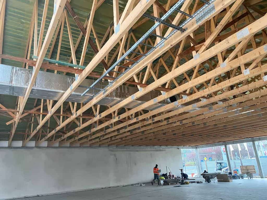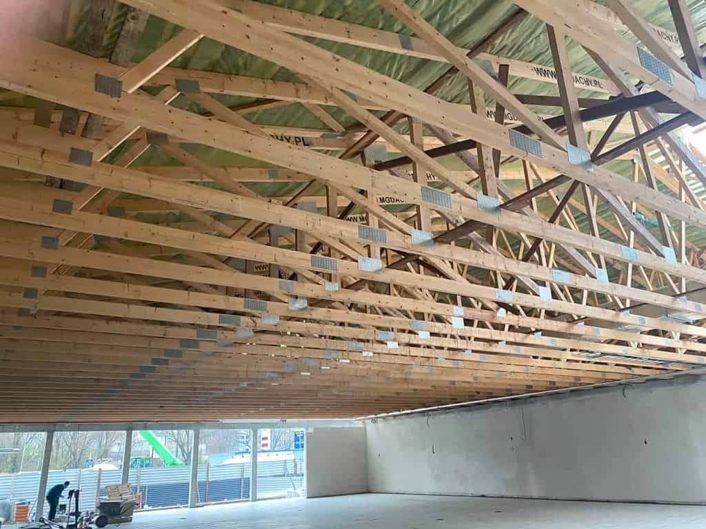 Dodatkowo, oprócz niższych kosztów, nasza firma oferuje też krótszy termin realizacji zamówienia na konstrukcję dachową od zdecydowanej większości dostawców konstrukcji stalowych. Produkcja w naszym zakładzie jest zautomatyzowana, oraz zintegrowana z programami CAD. Piły sterowane są komputerowo, a wiązary składane są z wykorzystaniem projekcji laserowej, znacznie przyspieszając proces produkcji i eliminując możliwość powstania błędów.