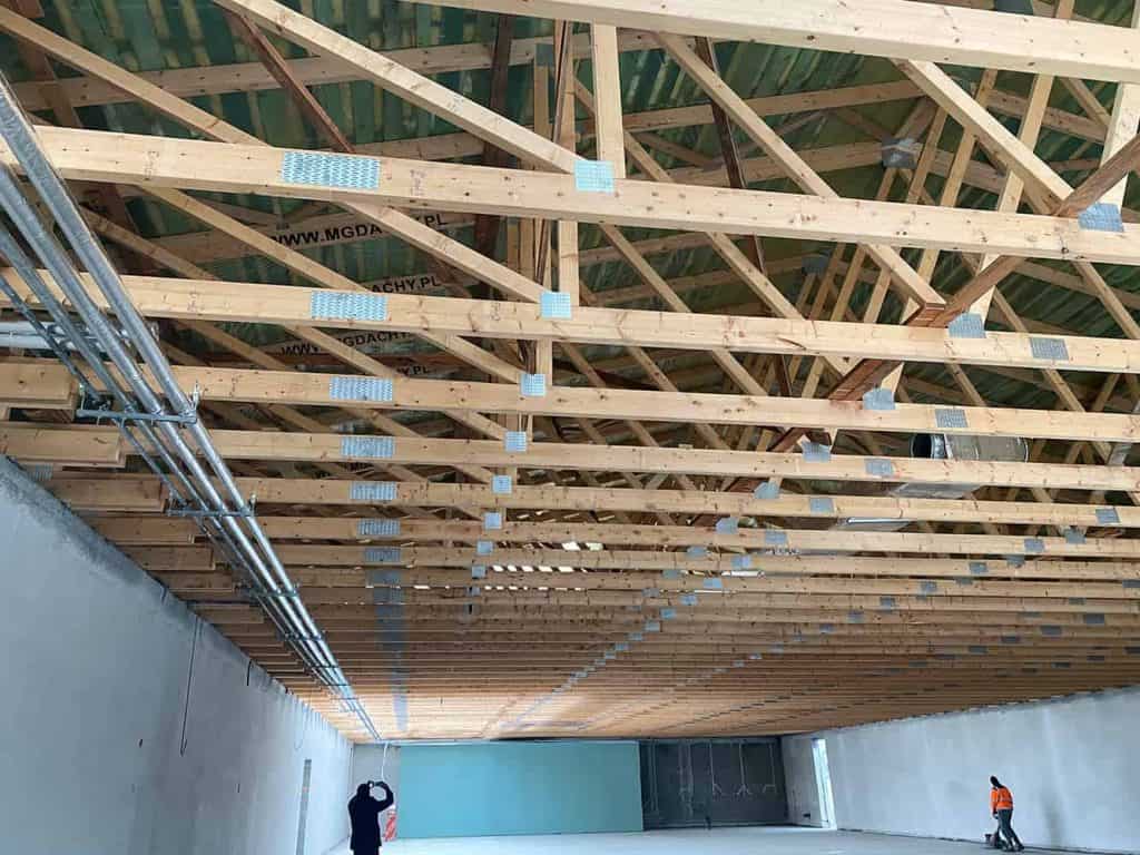 Wygodne łączenie drewna litego za pomocą płytki kolczastej sprawia, że wykonana konstrukcja dachowa może osiągnąć rozpiętość aż 30 m. Co więcej, nie ma konieczności zastosowania podpór pośrednich. Doskonale się zatem sprawdzi w przypadku budynków produkcyjnych czy magazynowych.